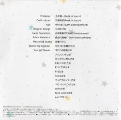M-14 - PC Game "HOSHI ORI ★ YUME MIRAI" Touko Yukimura Ending Song Composer: ANZE HIJIRI Arranger: ANZE HIJIRI Lyricist: Nissy